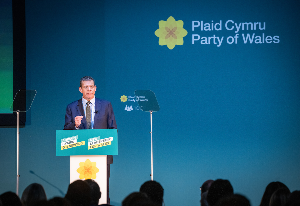 Plaid Cymru Leader Rhun ap Iorwerth addressed the party's annual conference at Swansea in October 2025.